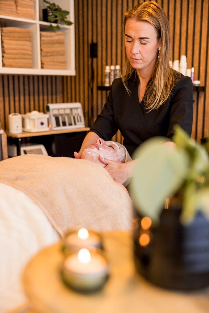 - Vervolgens breng ik een masker aan, ook weer aangepast aan wat jouw huid op dat moment nodig heeft.